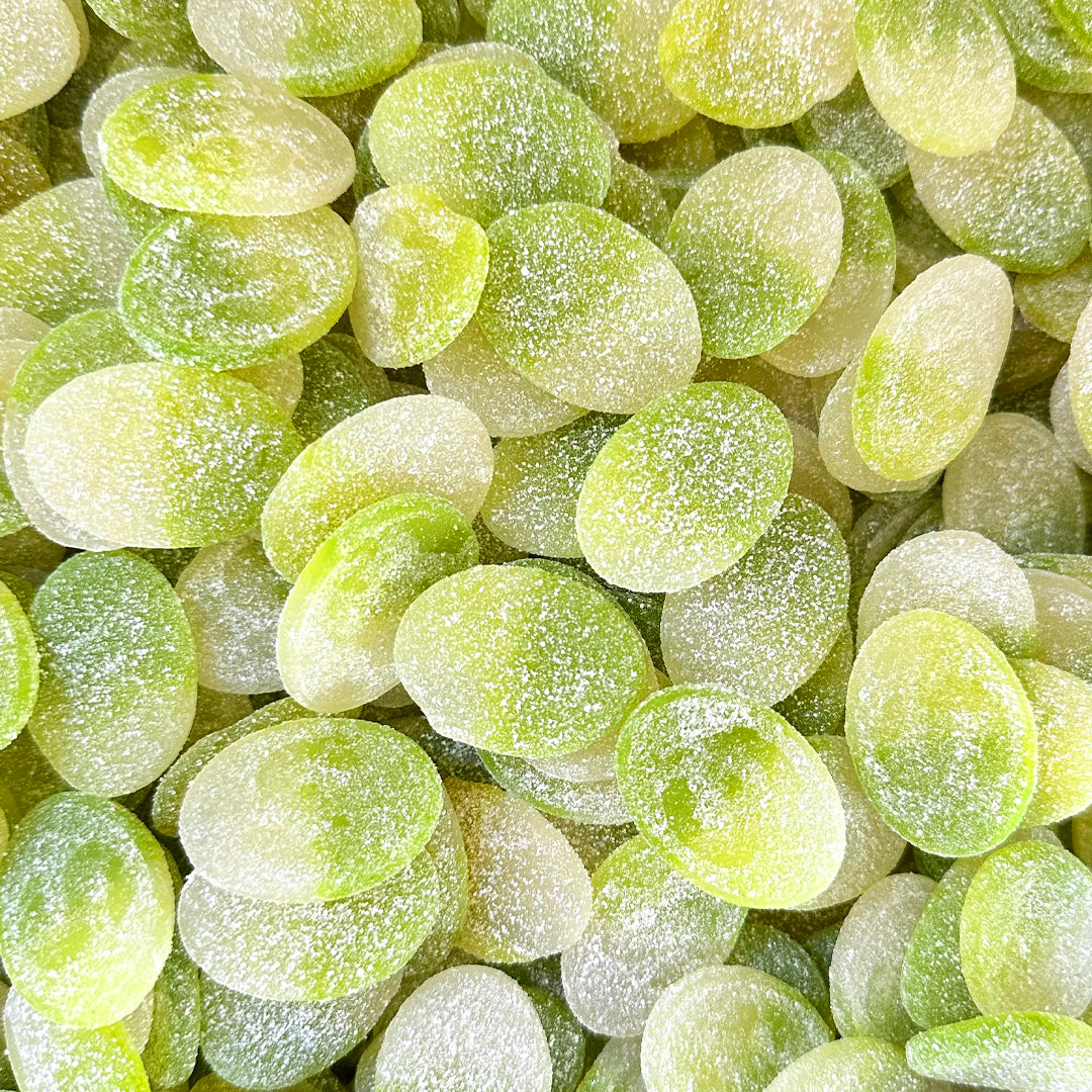 Glucose syrup, sugar, corn starch, acids (citric acid, malic acid), acidity regulators (sodium malates, sodium citrates), natural apple flavoring with other natural flavors, coloring (spirulina extract, apple extract, turmeric [for color]). Contains: WHEAT.